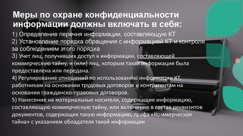 Меры по охране конфиденциальностиинформации должны включать в себя:
