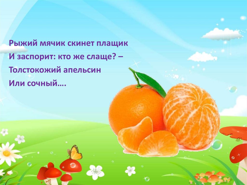 Рыжий мячик скинет плащикИ заспорит: кто же слаще? –