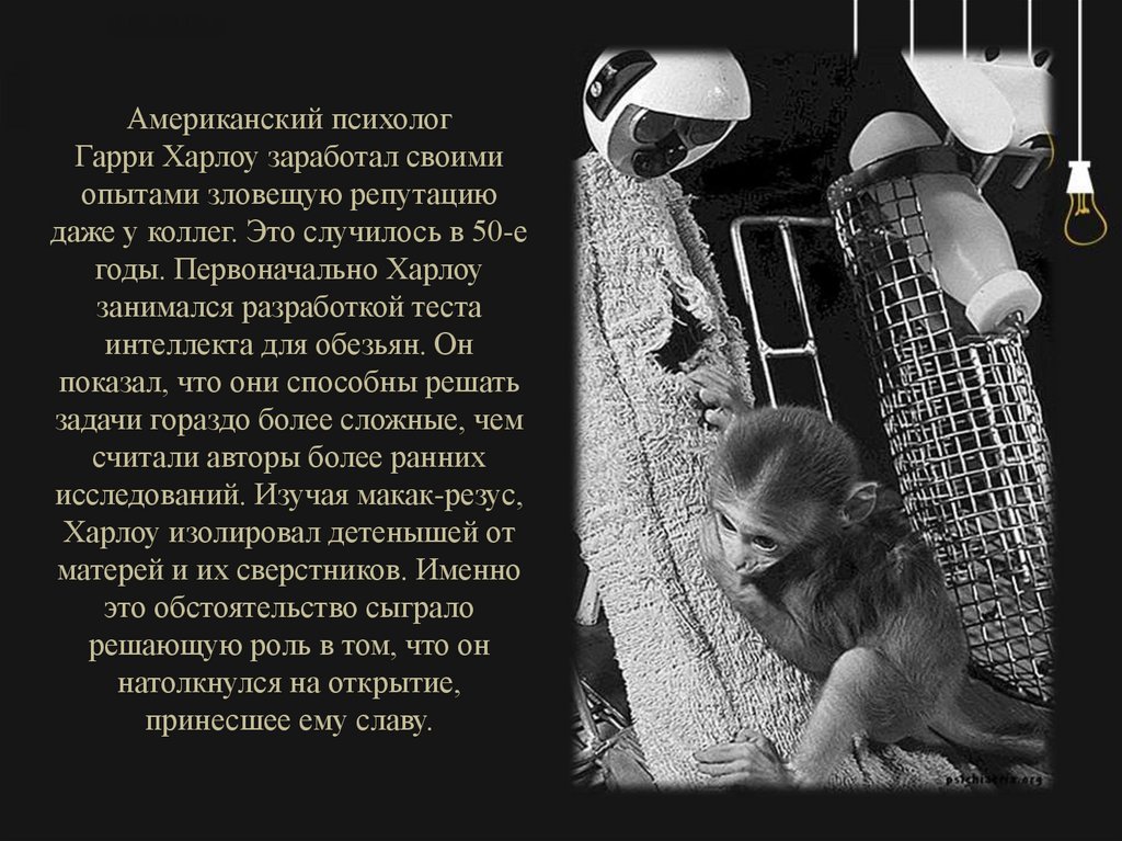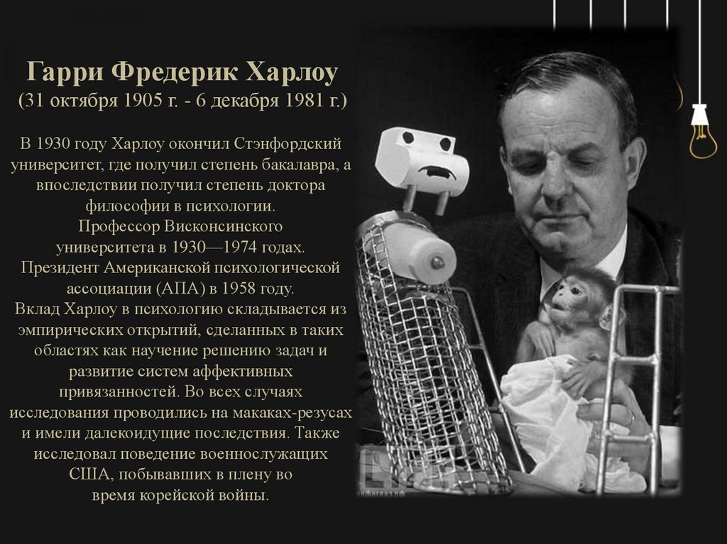 Американский психологГарри Харлоу заработал своими
