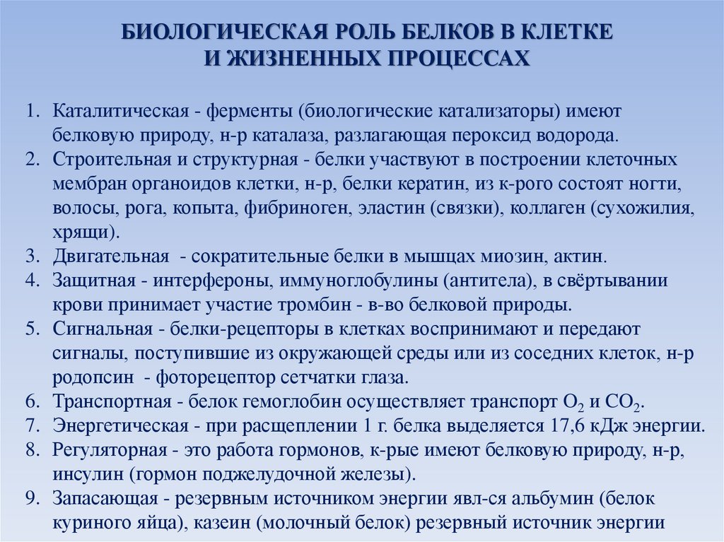 БИОЛОГИЧЕСКАЯ РОЛЬ БЕЛКОВ В КЛЕТКЕИ ЖИЗНЕННЫХ ПРОЦЕССАХ