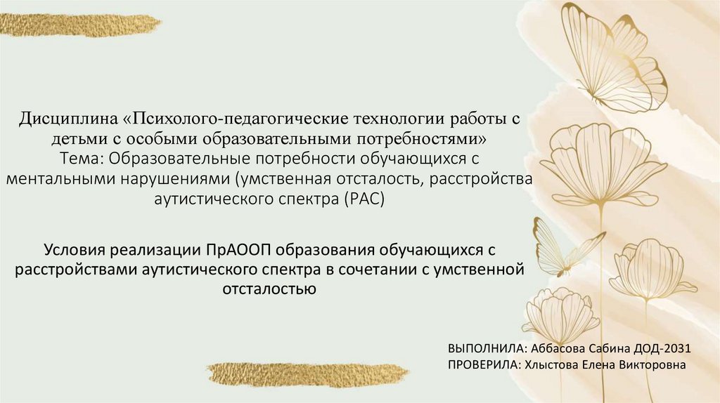 1. Дисциплина «Психолого-педагогические технологии работы с детьми с особыми образовательными потребностями» Тема: Образовательные