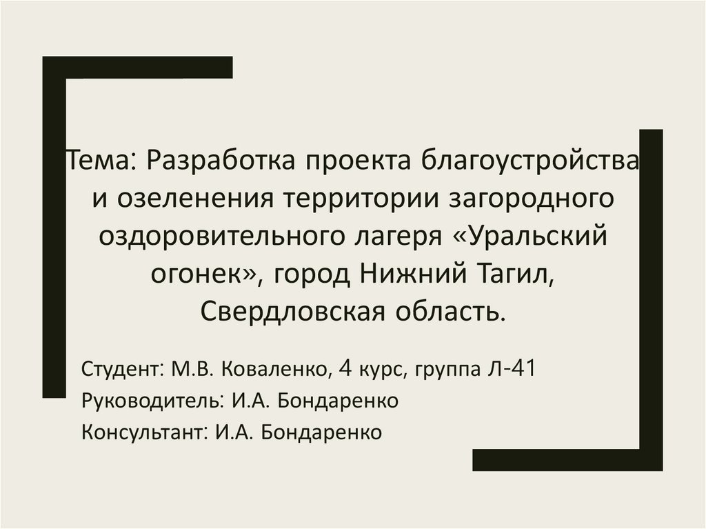 Разработка проекта благоустройства и озеленения территории загородного оздоровительного лагеря «Уральский огонек»