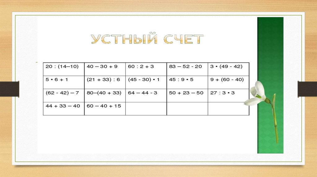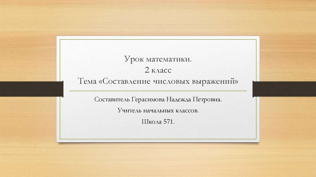 1. Урок математики. 2 класс Тема «Составление числовых выражений»