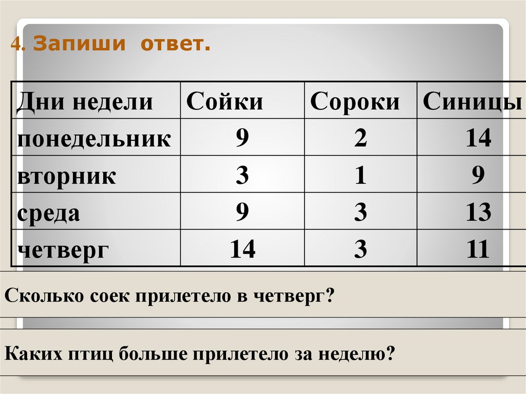 4. Запиши ответ.Дни недели Сойки