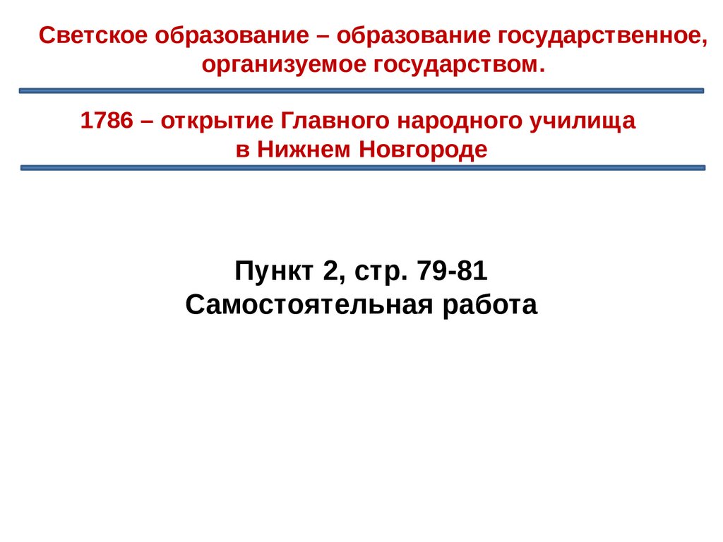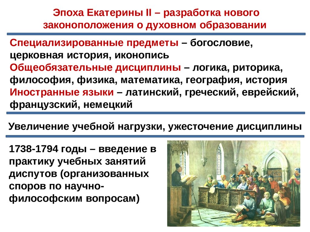 Эпоха Екатерины II – разработка новогозаконоположения о духовном образовании