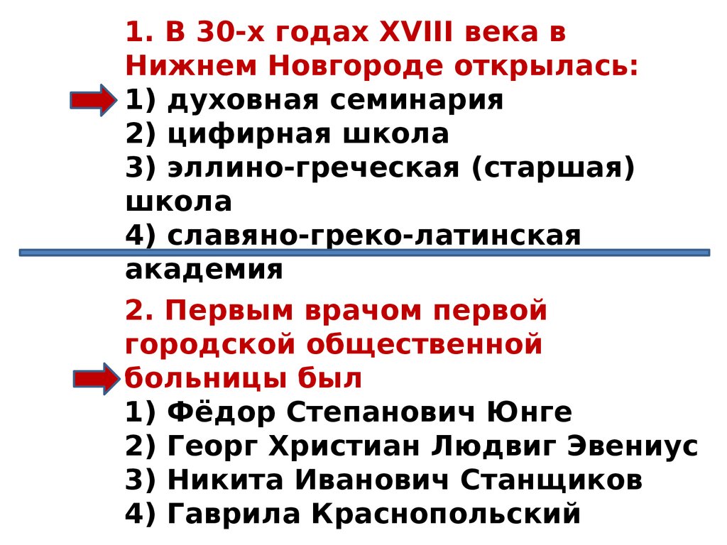 1. В 30-х годах XVIII века вНижнем Новгороде открылась: