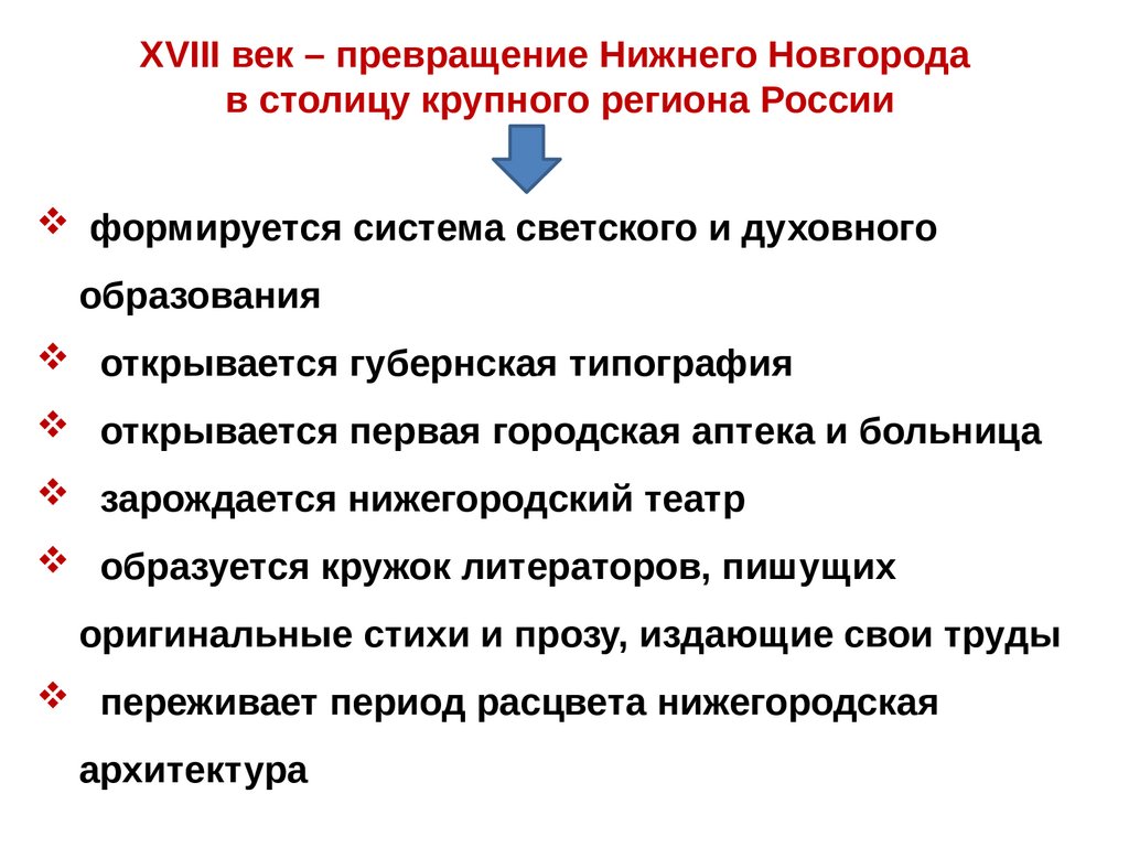 XVIII век – превращение Нижнего Новгородав столицу крупного региона России
