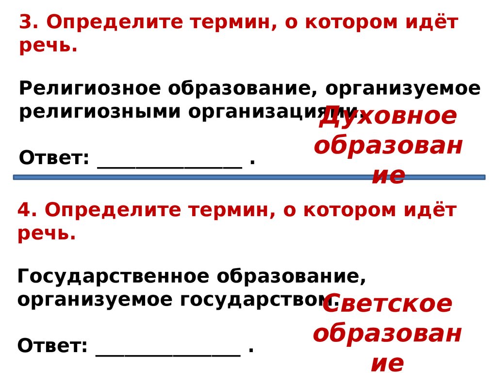 Духовное образование – образование религиозное,организуемое религиозными организациями.