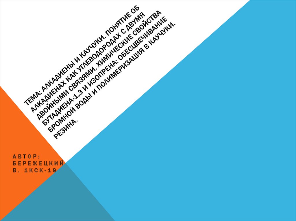 1. Тема: Алкадиены и каучуки. Понятие об алкадиенах как углеводородах с двумя двойными связями. Химические свойства бутадиена-1,3