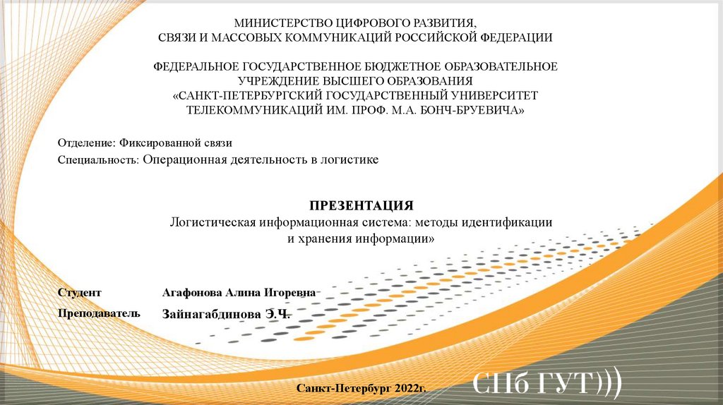 ТЕЛЕКОММУНИКАЦИЙ ИМ. ПРОФ. М.А. БОНЧ-БРУЕВИЧА»