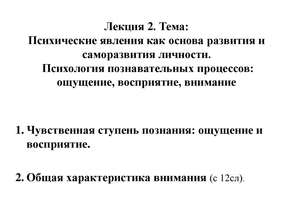 1. Лекция 2. Тема: Психические явления как основа развития и саморазвития личности. Психология познавательных процессов: ощущение,