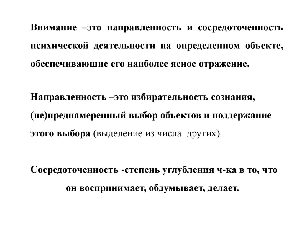 Внимание –это направленность и сосредоточенностьпсихической деятельности на определенном объекте,