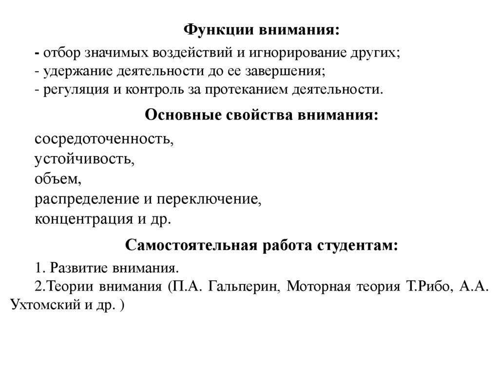 2.Теории внимания (П.А. Гальперин, Моторная теория Т.Рибо, А.А.