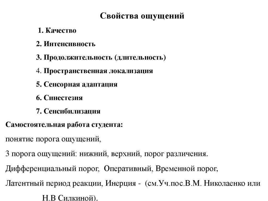 Свойства ощущений1. Качество