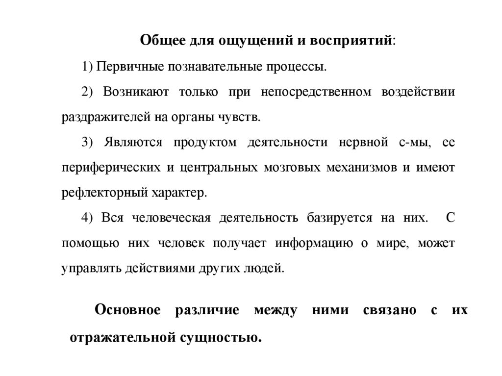 Общее для ощущений и восприятий:1) Первичные познавательные процессы.