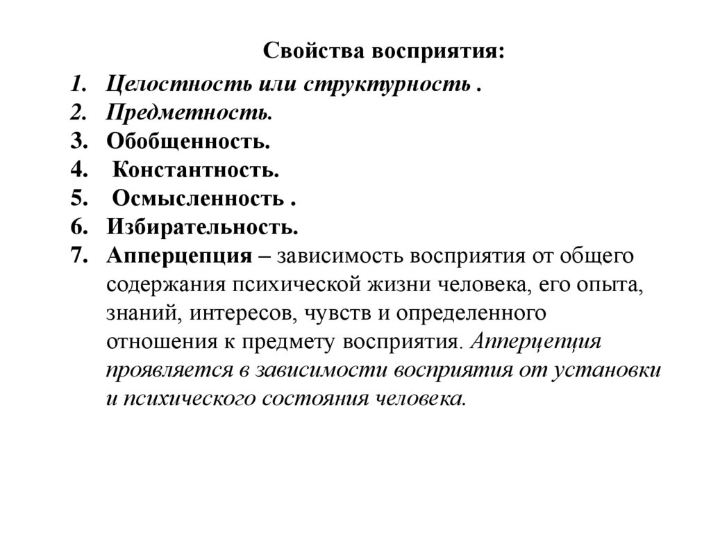 отношения к предмету восприятия. Апперцепция