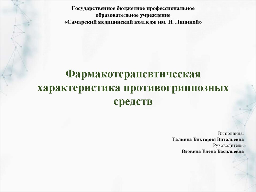 1. Рассмотрена современная фармакологическаяклассификация противогриппозных средств.