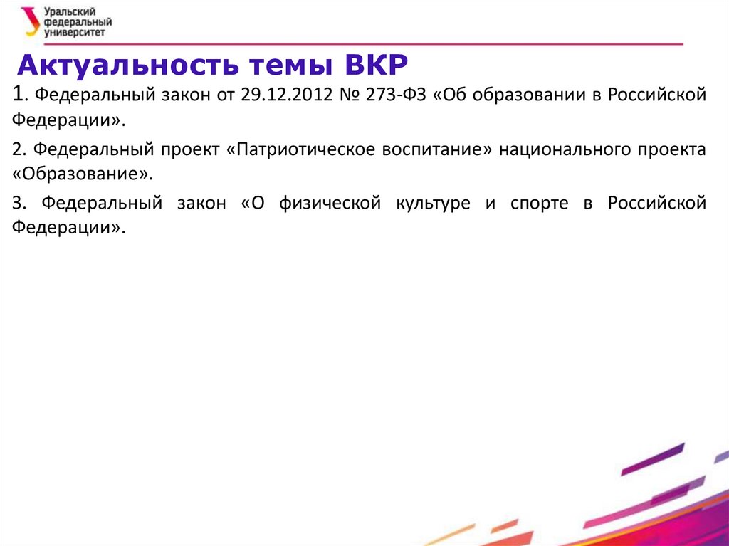 Актуальность темы ВКР1. Федеральный закон от 29.12.2012 № 273-ФЗ «Об образовании в Российской