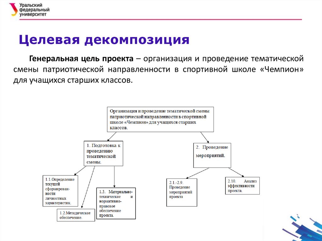 Целевая декомпозицияГенеральная цель проекта – организация и проведение тематической
