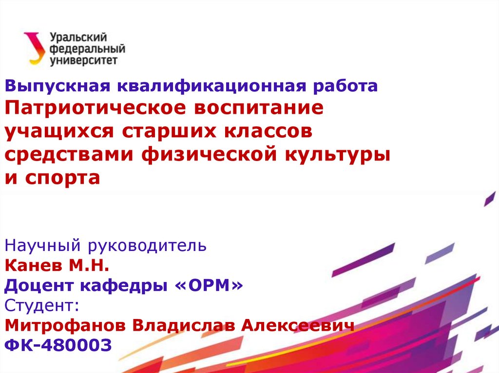 Патриотическое воспитание учащихся старших классов средствами физической культуры и спорта