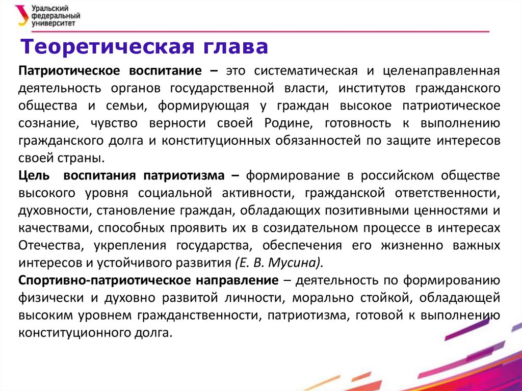 Теоретическая главаПатриотическое воспитание – это систематическая и целенаправленная