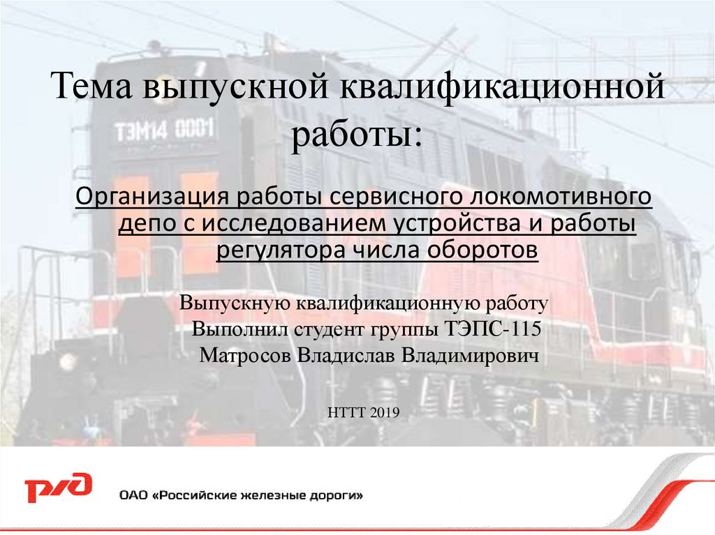 Организация работы сервисного локомотивного депо с исследованием устройства и работы регулятора числа оборотов