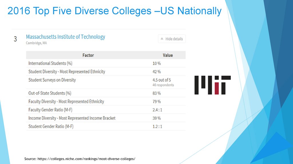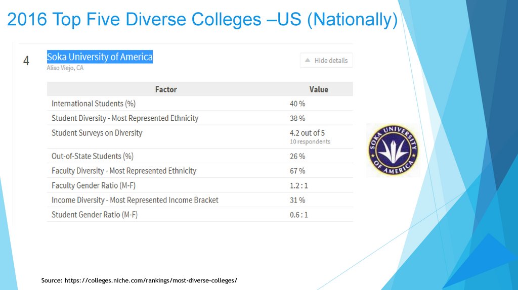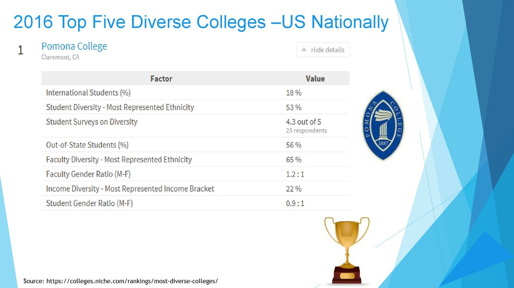 2016 Top Five Diverse Colleges –US Nationally16. Diversity and Inclusion in College