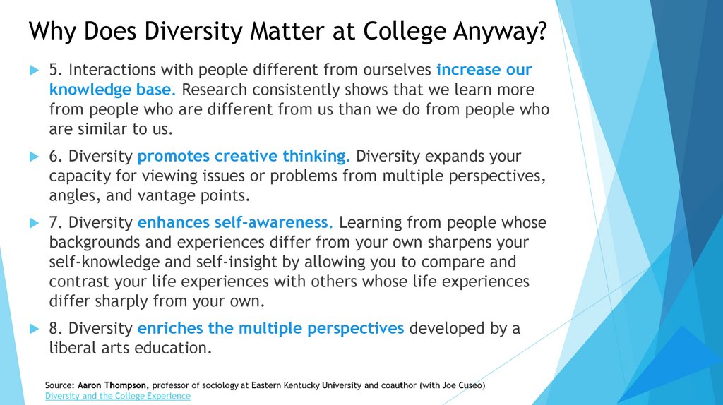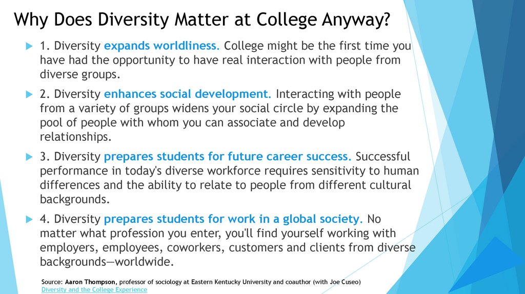 Why Does Diversity Matter at College Anyway?1. Diversity expands worldliness. College might be the first time you