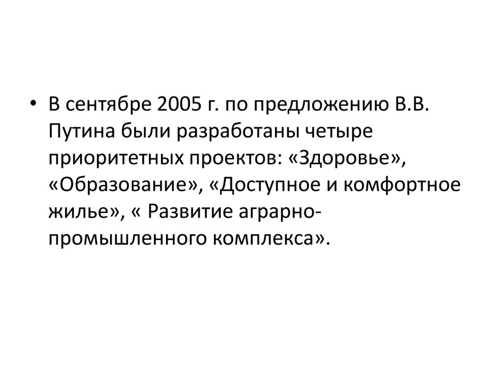 • В сентябре 2005 г. по предложению В.В.Путина были разработаны четыре