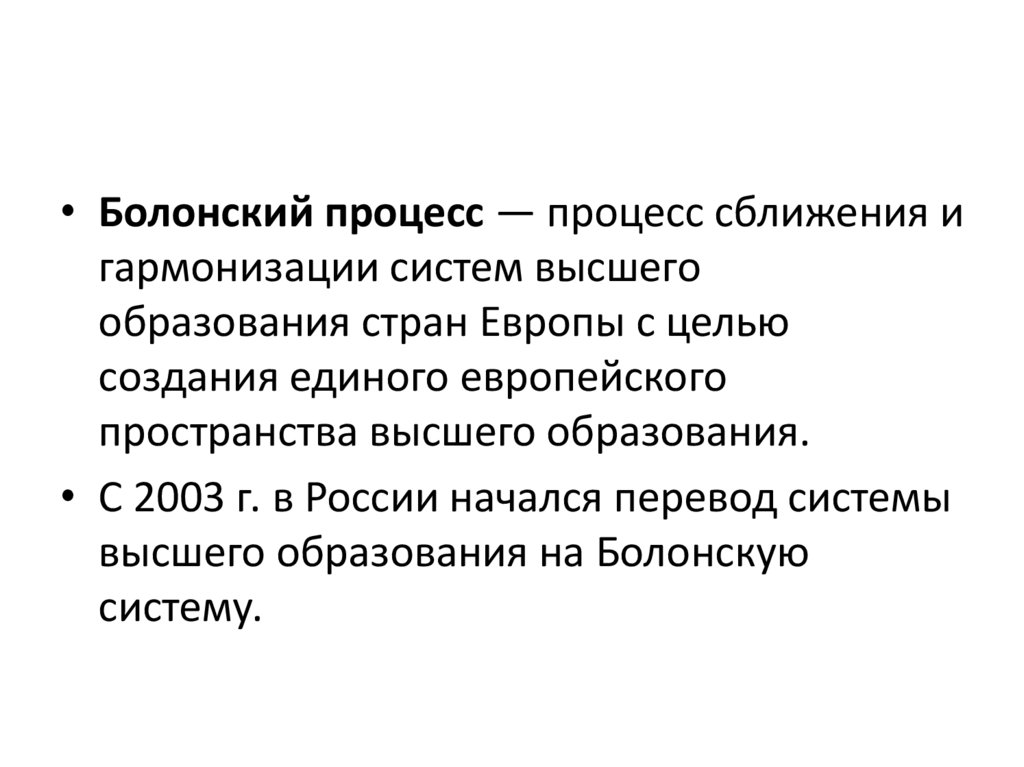 • Болонский процесс — процесс сближения игармонизации систем высшего