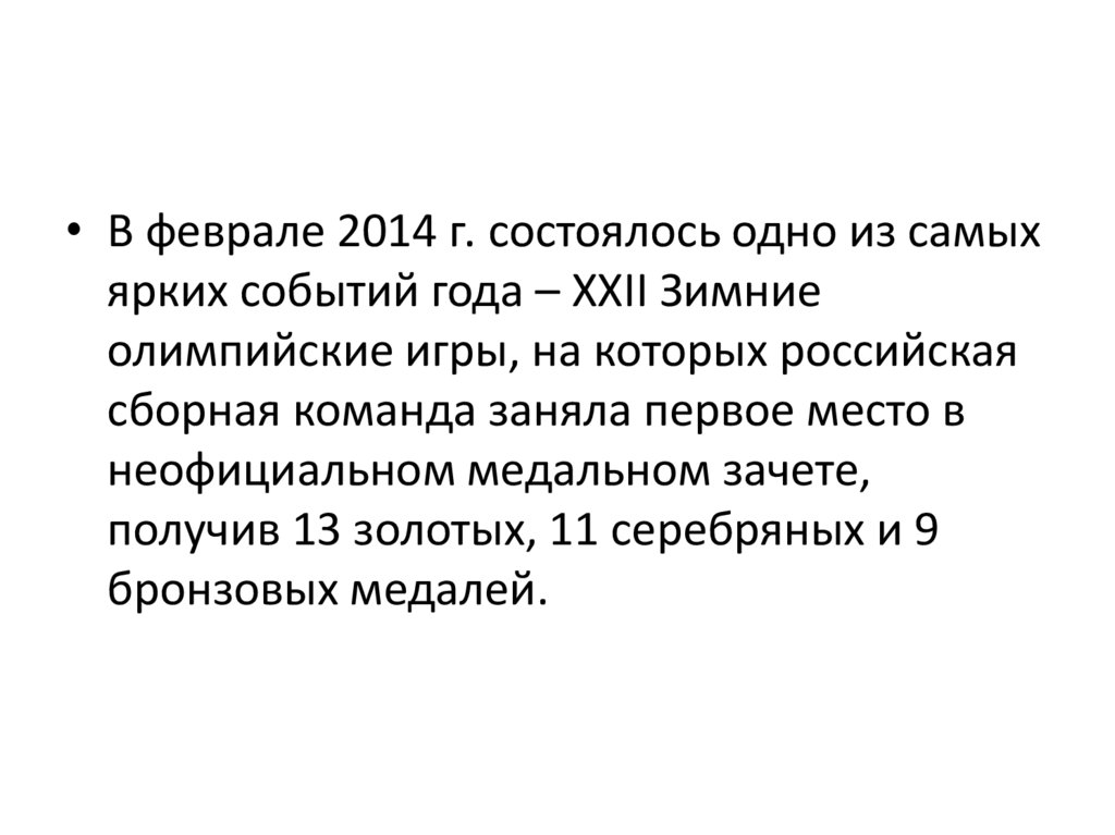• В феврале 2014 г. состоялось одно из самыхярких событий года – XXII Зимние