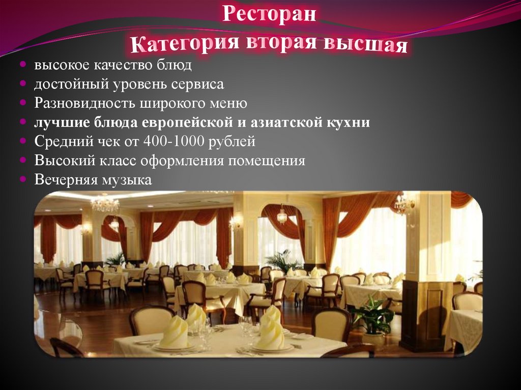 ресторана являются