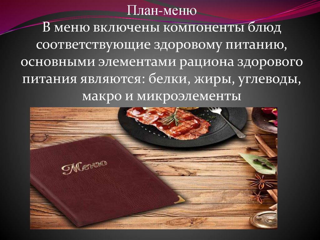 План-менюВ меню включены компоненты блюд