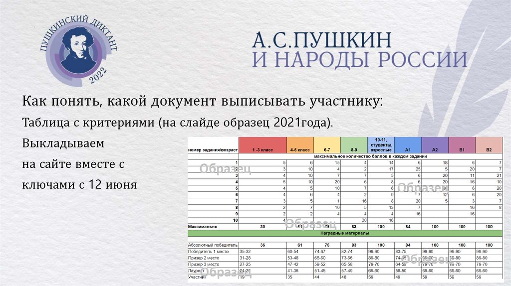 Как понять, какой документ выписывать участнику:Таблица с критериями (на слайде образец 2021года).