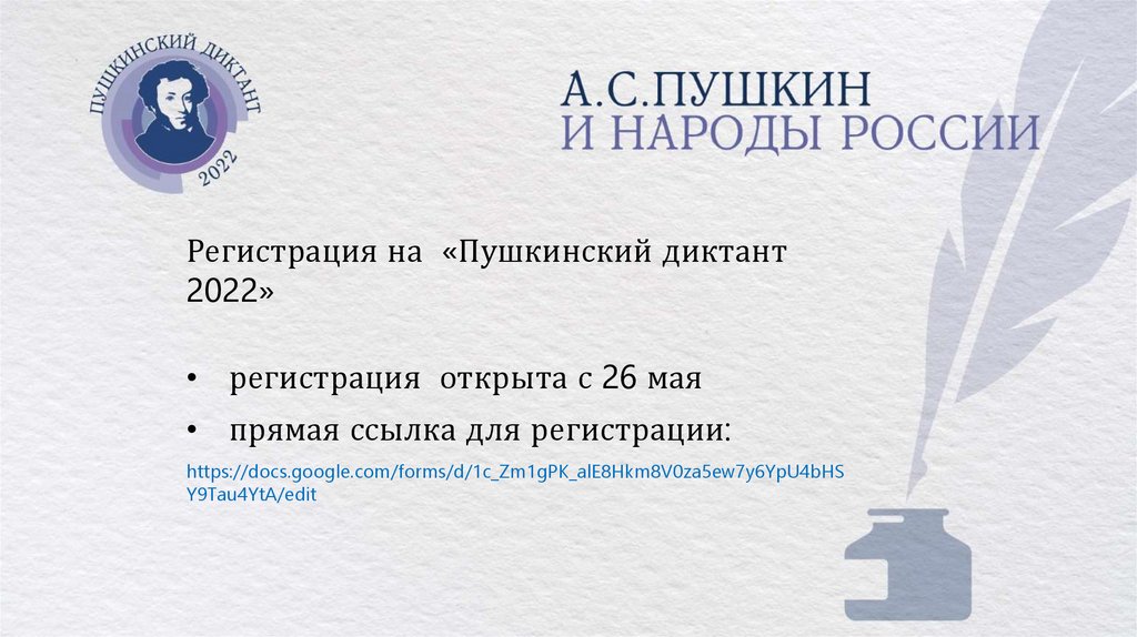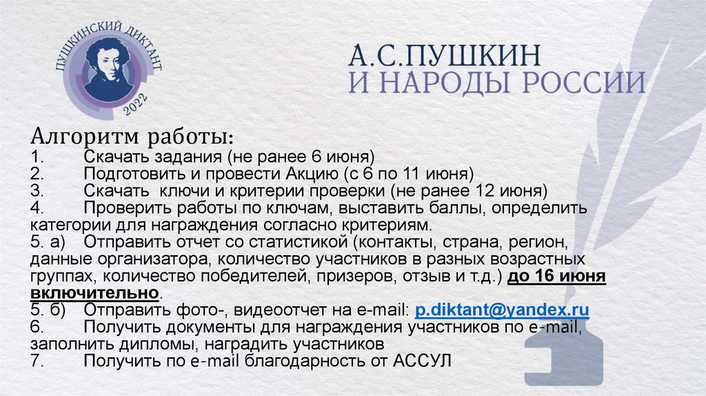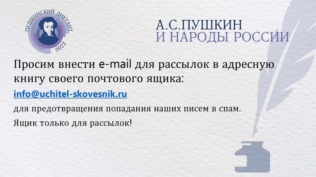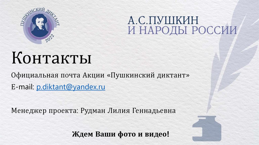 КонтактыОфициальная почта Акции «Пушкинский диктант»