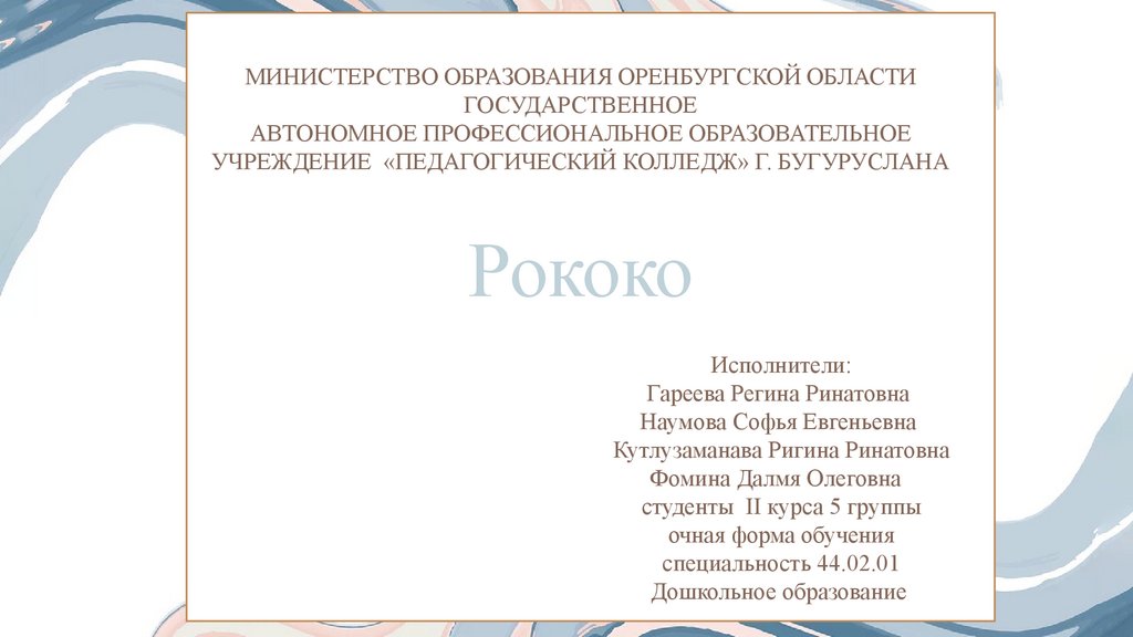 МИНИСТЕРСТВО ОБРАЗОВАНИЯ ОРЕНБУРГСКОЙ ОБЛАСТИГОСУДАРСТВЕННОЕ