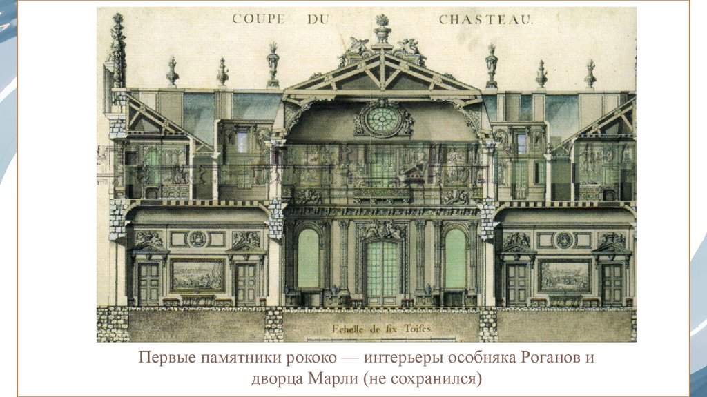 Первые памятники рококо — интерьеры особняка Роганов идворца Марли (не сохранился)