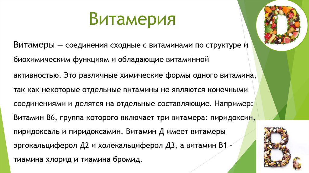 ВитамерияВитамеры — соединения сходные с витаминами по структуре и