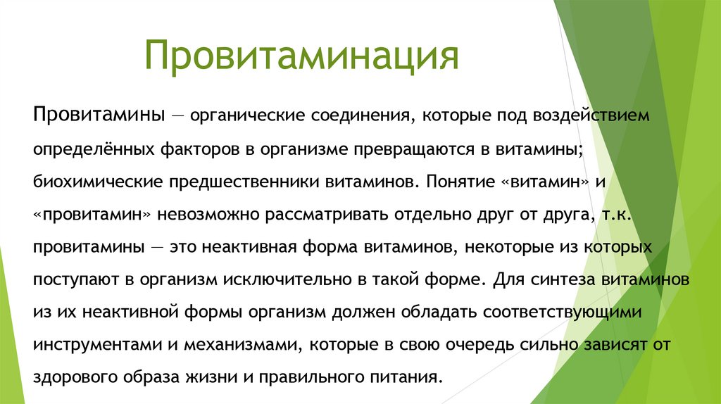 ПровитаминацияПровитамины — органические соединения, которые под воздействием