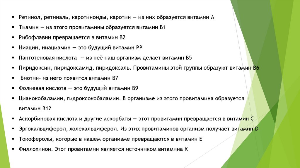 провитамины — это неактивная форма витаминов, некоторые из которых