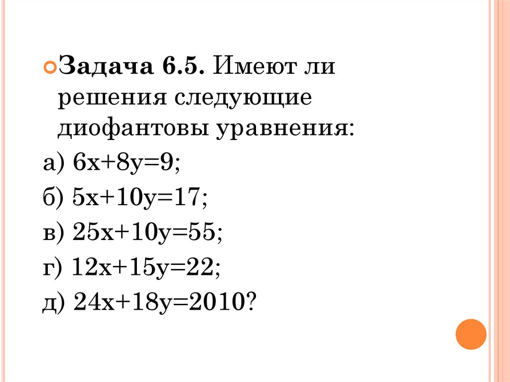 ДИОФАНТОВЫ УРАВНЕНИЯЗадачи