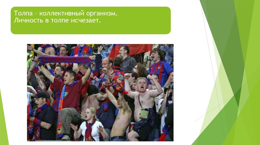 Толпа – коллективный организм.Личность в толпе исчезает.