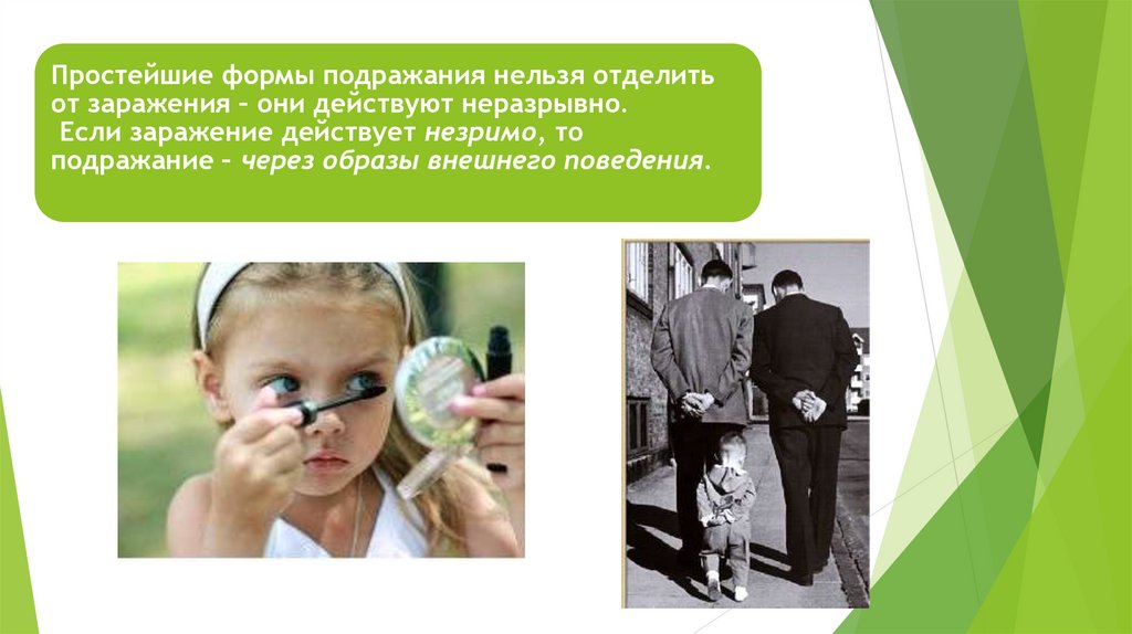 Простейшие формы подражания нельзя отделитьот заражения – они действуют неразрывно.