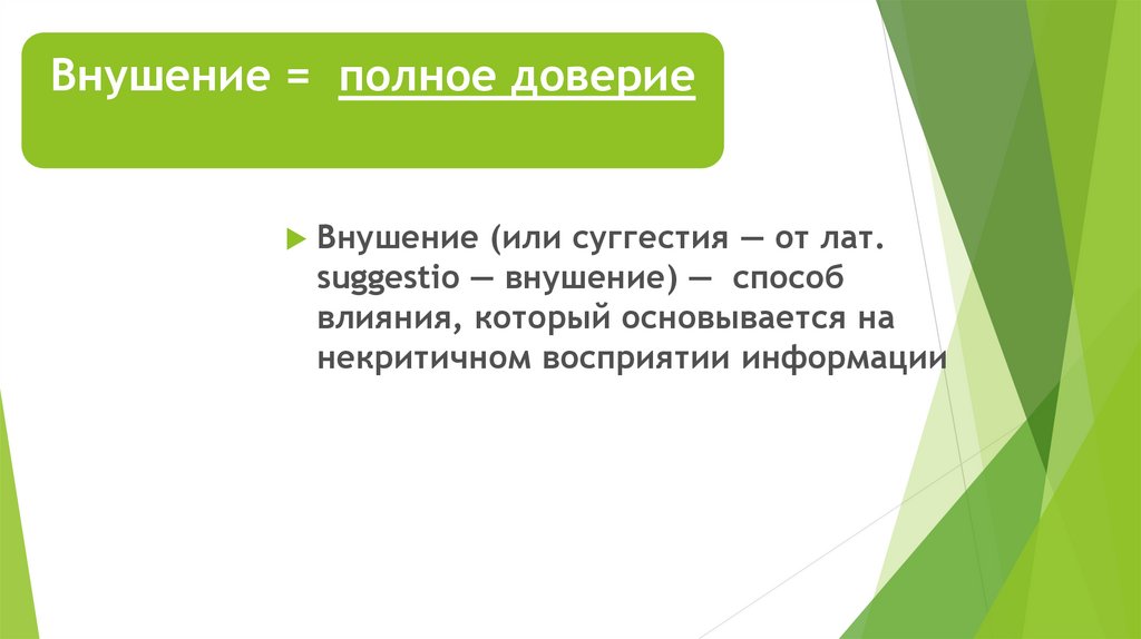 Внушение = полное довериеВнушение (или суггестия — от лат.