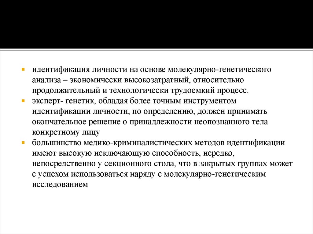 идентификация личности на основе молекулярно-генетическогоанализа – экономически высокозатратный, относительно