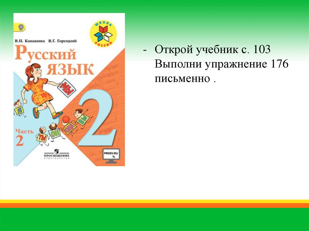 - Открой учебник с. 103Выполни упражнение 176
