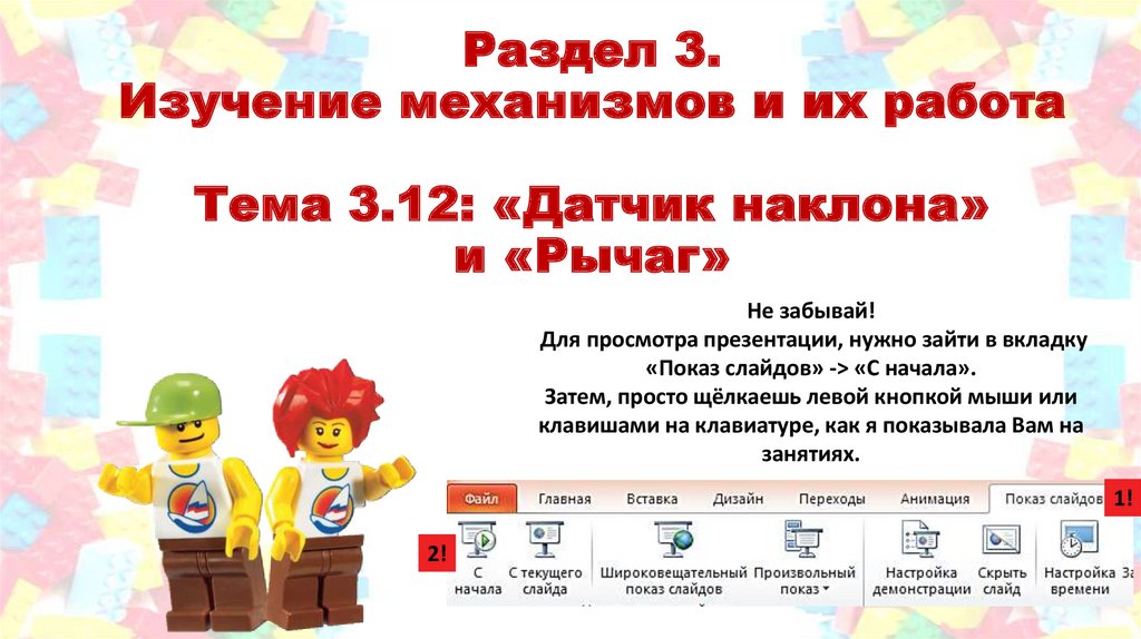 1. Раздел 3. Изучение механизмов и их работа Тема 3.12: «Датчик наклона» и «Рычаг»