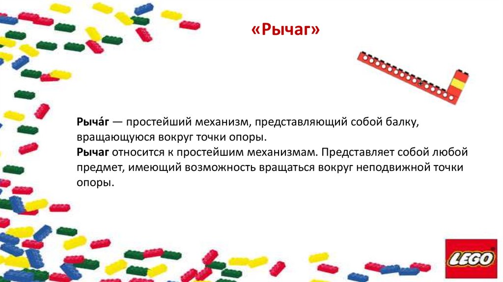 «Рычаг»Рыча́г — простейший механизм, представляющий собой балку,