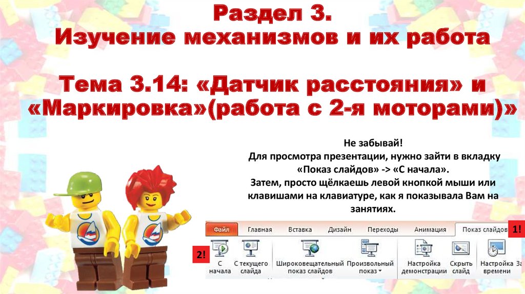 1. Раздел 3. Изучение механизмов и их работа Тема 3.14: «Датчик расстояния» и «Маркировка»(работа с 2-я моторами)»