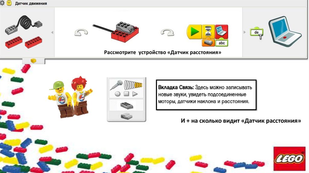 Рассмотрите устройство «Датчик расстояния»И + на сколько видит «Датчик расстояния»